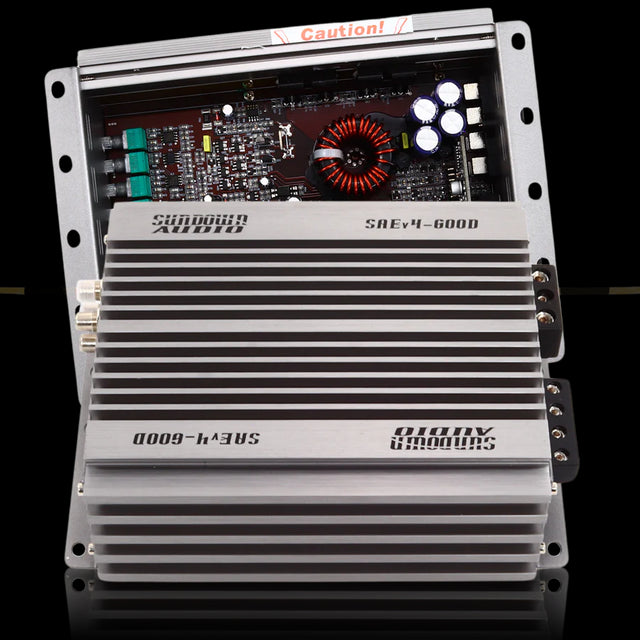 Back after popular demand, we introduce to you, the SAEv4 series of amplifiers from Sundown Audio. Many customers have stated they wanted us to bring back a budget friendly Korean style amplifier like the very popular SAEv1 and SAEv2 series of amplifiers. We listened and did just that. Sporting an all new chassis and heatsink, we���ve added 33% more aluminum, which takes a dramatic approach to help keep your amplifier cool during heavy loads.