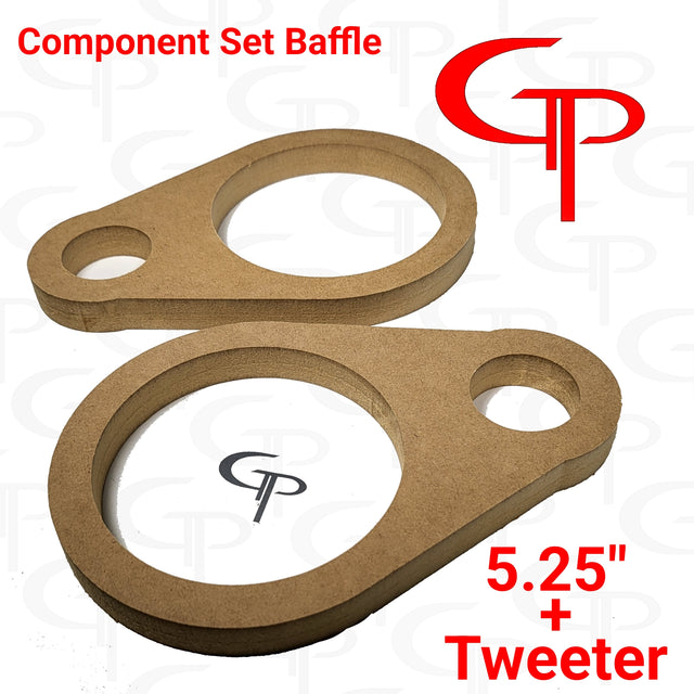 Made in-house, In the USA GPcarAudio's in-house CNC Cut 5.25" + Tweeter Door pod baffles Material: 3/4" MDF 5.25" Location Specs Inner mounting diameter: 4.75" For 5.25" Speakers with a mounting diameter of 4.75" or smaller. Tweeter Location Specs Inner Mounting Diameter: 1.75" For super tweeters with a mounting diameter of 1.75" or smaller.