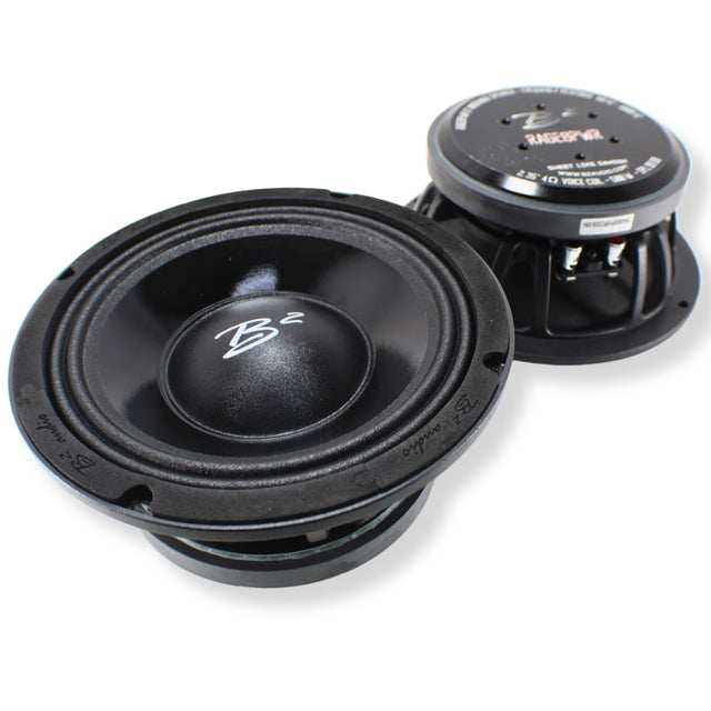 Prepare to ignite a sonic revolution with the B2 Audio Rage Series 8"" 4-Ohm Mid-Range Speakers; the epitome of auditory fury! These speakers don't just play music; they unleash a storm of sound that'll leave your ears ringing and your heart pounding. With an earth-shattering 275W RMS power handling, they're not here to play nice; they're here to dominate your car's audio landscape with sheer aggression and power. Engineered to withstand the elements, their water-resistant cone and dust cap scoff at moisture, ensuring they'll keep roaring. Don't just upgrade your sound system, unleash the rage with the B2 Audio Rage Series 8"" 4-Ohm Mid-Range Speakers and let the fury reign supreme!